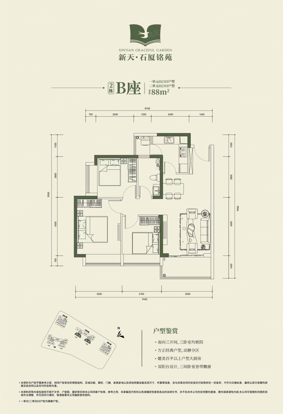 备受瞩目的新天石厦铭苑项目现已正式获得预售许可证,即将于5月20日迎来开盘发售的重要时刻。 本项目共计推出1栋与2栋两栋住宅楼,房源总数达265套,其中包括235套高品质住宅产品......